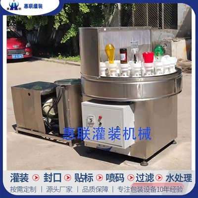 青州市惠聯(lián)灌裝機(jī)械有限公司是一家集生產(chǎn)研發(fā)、銷售、服務(wù)于一體的液體灌裝成套設(shè)備生產(chǎn)企業(yè),可根據(jù)廠家要求設(shè)計合理液體灌裝生產(chǎn)線,為用戶提供技術(shù)咨詢、設(shè)計工藝、場區(qū)平面布置、工藝改造、設(shè)備安裝調(diào)試等完善服務(wù)。 公司生產(chǎn)制造各種類型液體灌裝機(jī)、過濾機(jī),水處理設(shè)備及液體灌裝成套設(shè)備。主要產(chǎn)品有:白酒、葡萄酒、黃酒等酒水灌裝機(jī)、食用油、機(jī)油、潤滑油等油類灌裝機(jī)、醬油醋、老抽、生抽等調(diào)味品灌裝機(jī)、防凍液、玻璃水灌裝機(jī)、酒精、84消毒液灌裝機(jī)、車用尿素灌裝機(jī)、口服液灌裝機(jī)、洗滌劑灌裝機(jī)等多種液體、膏體灌裝設(shè)備,全自動/半自動灌裝機(jī)型號多,規(guī)格全,洗瓶機(jī)、瓶子封口機(jī)、打塞機(jī)、熱縮機(jī)、瓶子烘干機(jī)、貼標(biāo)機(jī)、噴碼機(jī)、輸送線、裝箱機(jī)、水處理設(shè)備等全套生產(chǎn)線相關(guān)配套設(shè)備齊全,自產(chǎn)自銷,一站式購齊,售后無憂。